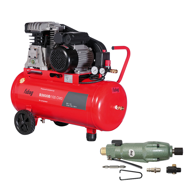 Компрессорная головка B3600B обеспечивает высокие эксплуатационные характеристики и КПД работы компрессора. Производительности данной модели ременного компрессора достаточно для работы практически с любым профессиональным пневмоинструментом. Fubag B3600B/100 CM3 работает от сети 220 В.