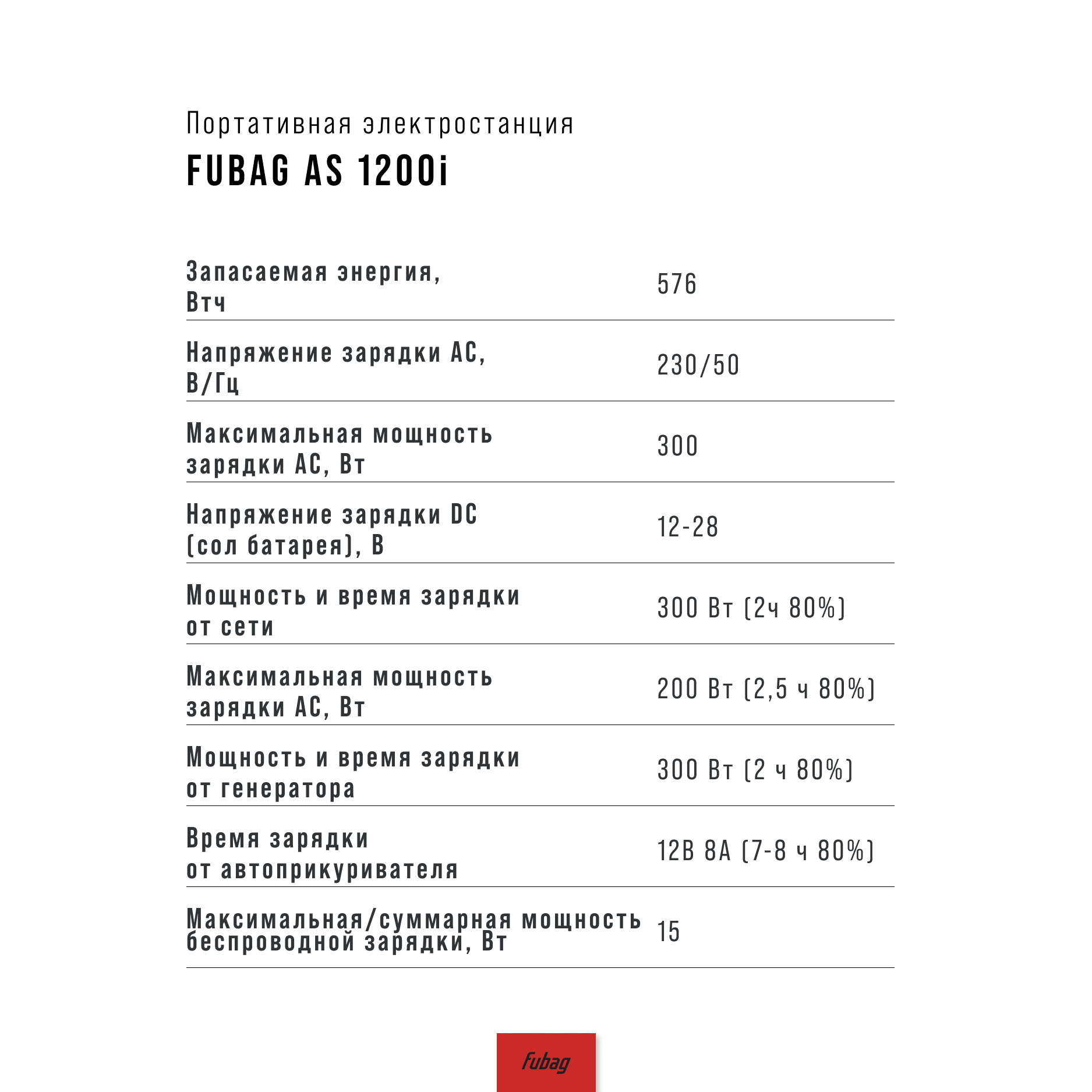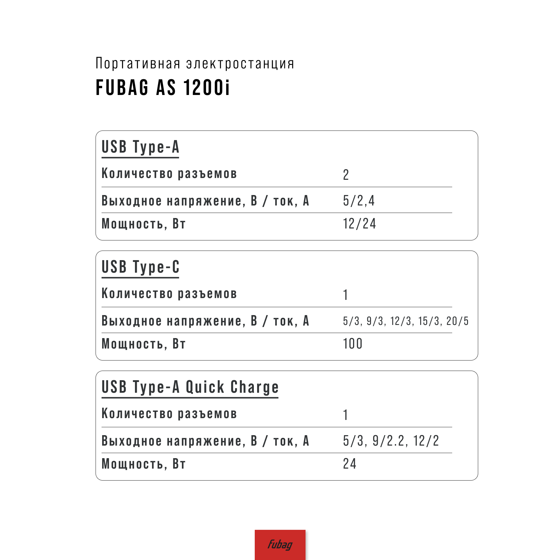 Характеристики Портативная электростанция FUBAG AS 1200i (аккумулятор LiFePO4)