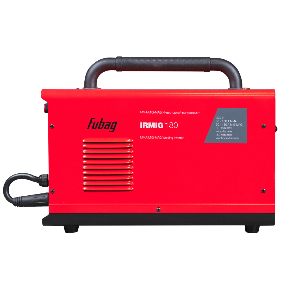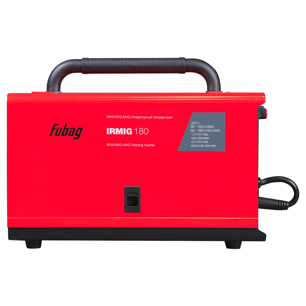 Сварочный инвертор FUBAG IRMIG 180 – высокопроизводительный сварочный полуавтомат, оптимален для проведения сварочных работ на производстве, стройке и в автомастерской. Аппарат позволяет проводить сварку в режимах MIG/MAG и ММА, оснащен евроразъемом для быстрого и безопасного подключения сварочной горелки, а также металлическим подающим механизмом. Благодаря плавной регулировке сварочного тока, скорости подачи проволоки и функции регулировки индуктивности, полуавтомат позволяет установить режим сварки для конкретной толщины и материала свариваемых заготовок.Сварочный инвертор IRMIG 180 работает в диапазоне тока 30-180А в режиме MIG/MAG омедненной проволокой диаметром 0,6-1 мм с катушкой весом до 5 кг и диаметром 200 мм. Универсальный держатель проволоки позволяет надежно крепить катушки внутри аппарата.